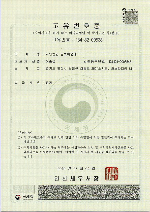 사단법인 돌보미연대 고유번호증 페이지 정보 작성자 운영자 댓글 0건 조회 1,628회 작성일 20-02-11 15:27 본문 사단법인 돌보미연대 고유번호증 SNS공유 목록 이전글사단법인 돌보미연대, 경기도 민간단체등록증 20.02.11 다음글사단법인 돌보미연대 법인 허가증 20.02.11 댓글목록 댓글목록 등록된 댓글이 없습니다.